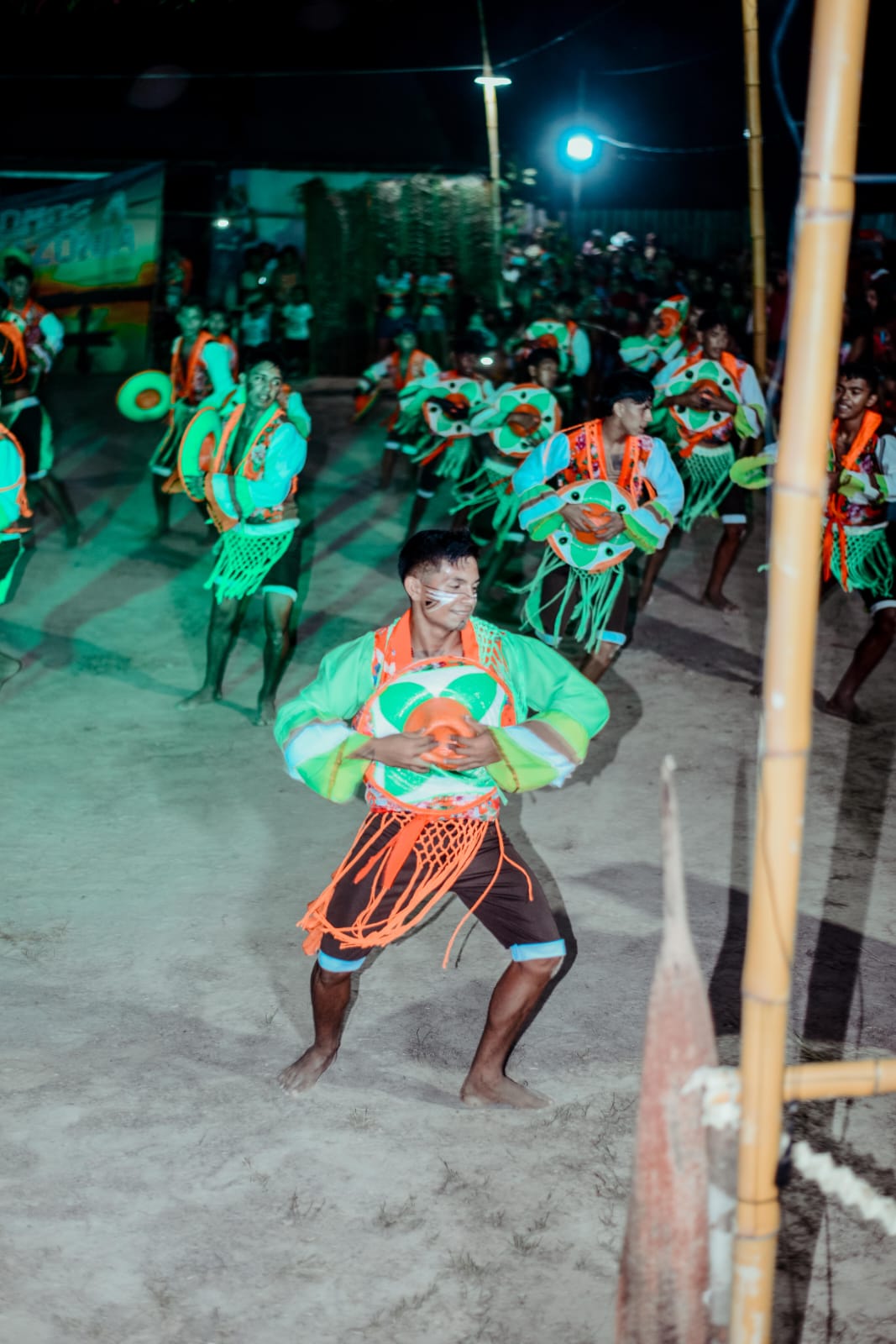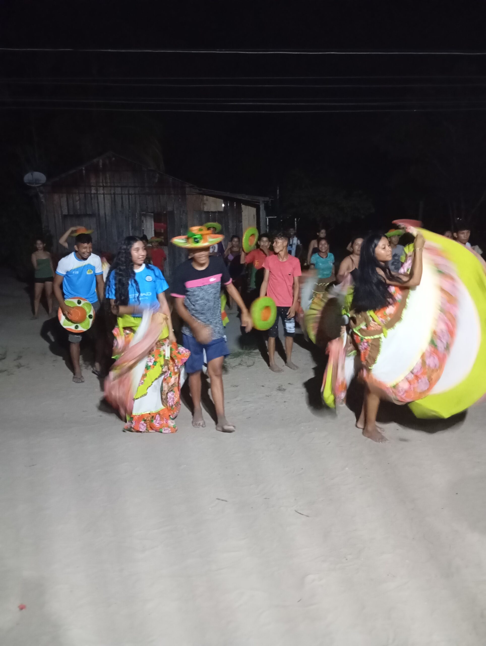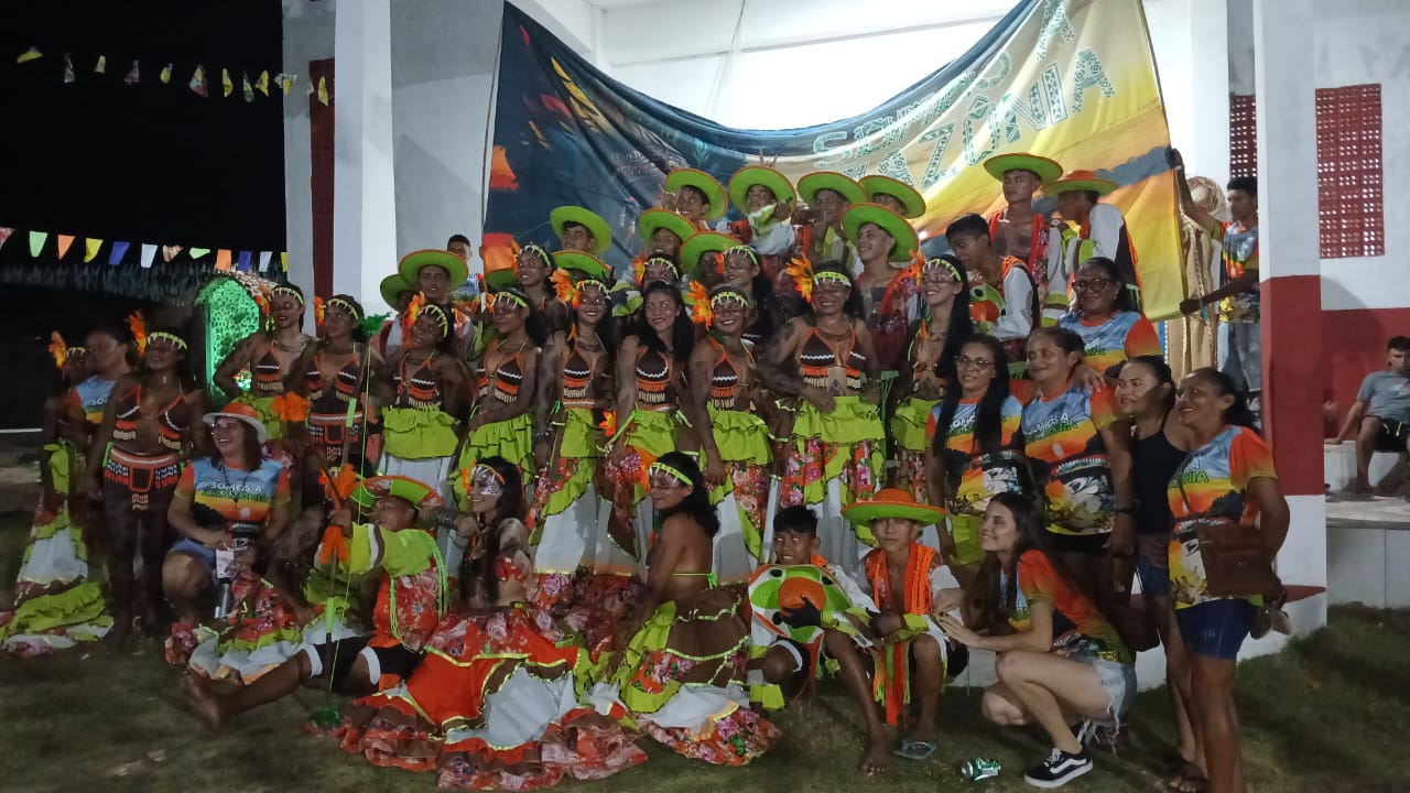 Nas margens serenas do Rio Arapiuns, onde a natureza encanta e a vida ribeirinha pulsa com simplicidade e harmonia, nasceu o sonho de unir as vozes, os passos e os tambores em um só ritmo: o carimbó. Inspirados pelas histórias, lendas e riquezas culturais que percorrem a comunidade, surgiu o Grupo de Carimbó Cheiro da Amazônia, um movimento dedicado a celebrar a identidade, a história e a conexão com a Amazônia. Mais do que um coletivo de dança e música, o grupo é um espaço de valorização das raízes culturais, reunindo gerações onde os mais velhos compartilham seus saberes e os mais jovens aprendem ao som do tambor. A missão é levar adiante o legado do carimbó, fortalecendo os laços comunitários e promovendo o respeito à natureza, fonte de inspiração e sustento para todos.